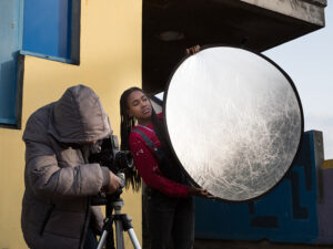 Le groupe des collégiens est formé d’une classe de 3e du Collège Gabriel Péri. En collaboration avec la professeure de lettres et le professeur d’espagnol du collège, Thomas Guyenet propose un travail sur la photographie consistant à décoder de grandes œuvres picturales et les transposer en photographie. Fanny Béguery quant à elle, anime l’atelier des enfants avec une classe de CE2 de l’école Joliot Curie, consacré aux pratiques du dessin, du monotype en gravure et du modelage. Cet atelier propose aux enfants de faire apparaître toutes sortes d’images et d’histoires sur (et dans) le lieu de leur enfance.